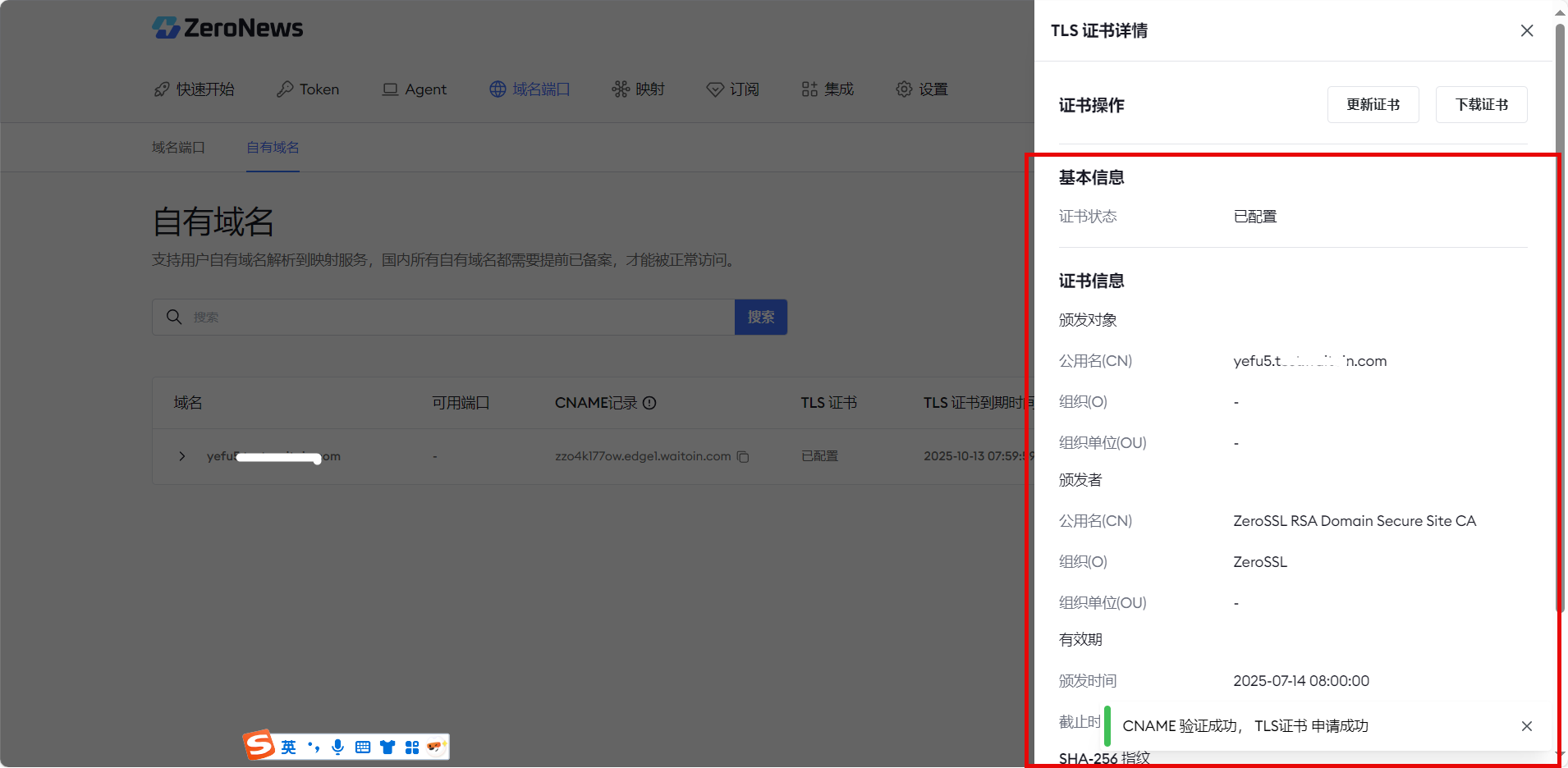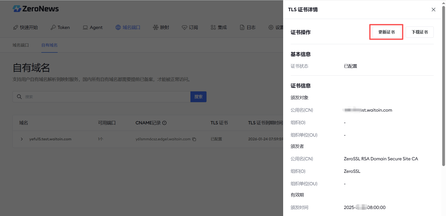 一、 ZeroNews 平台生成的TLS证书更新