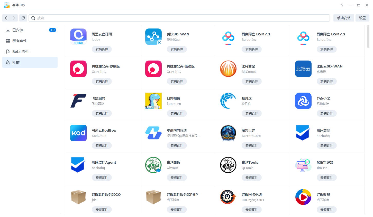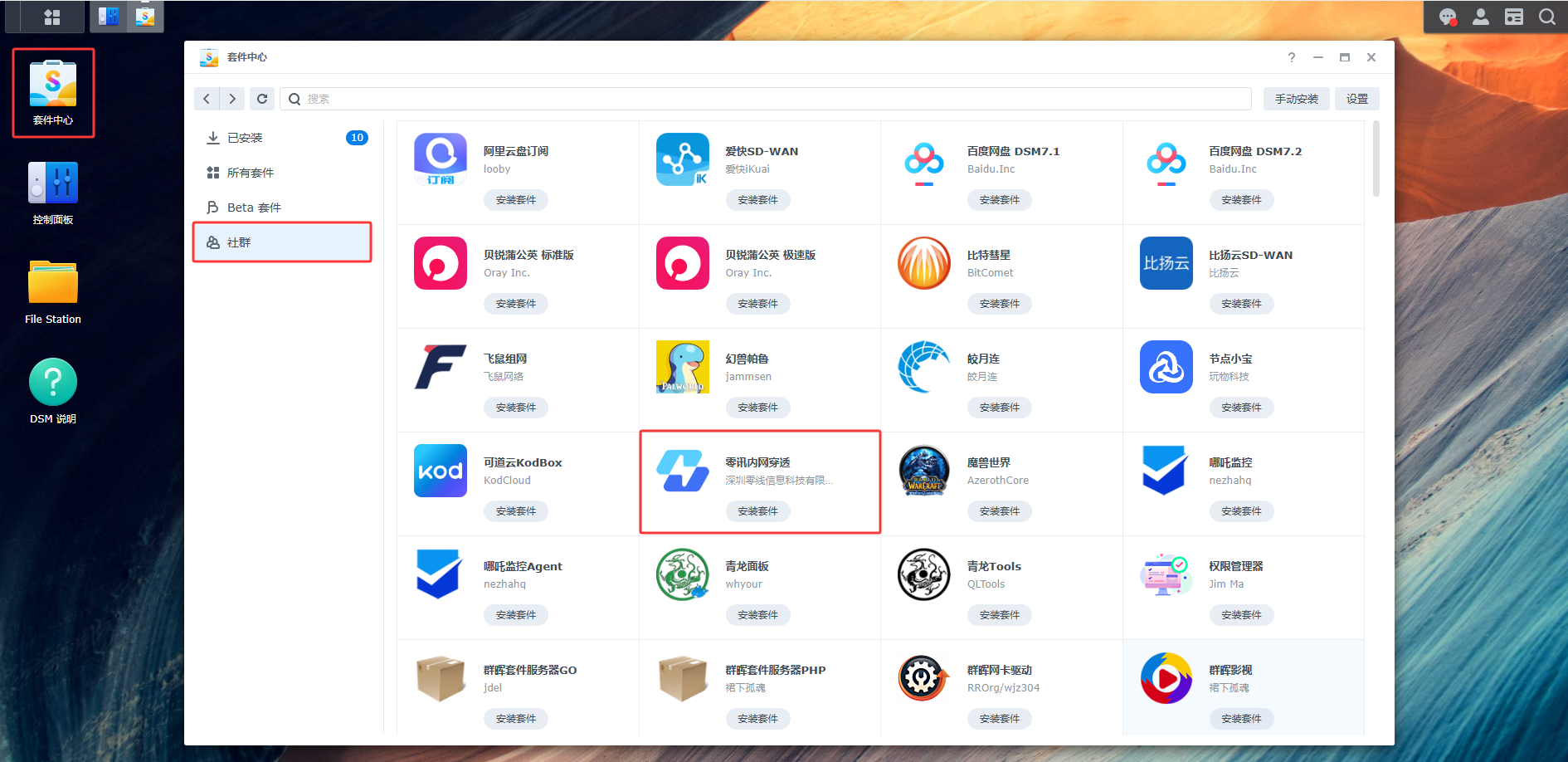 回到套件中心主界面,您会看到左侧多了一个 「社群」 分类。