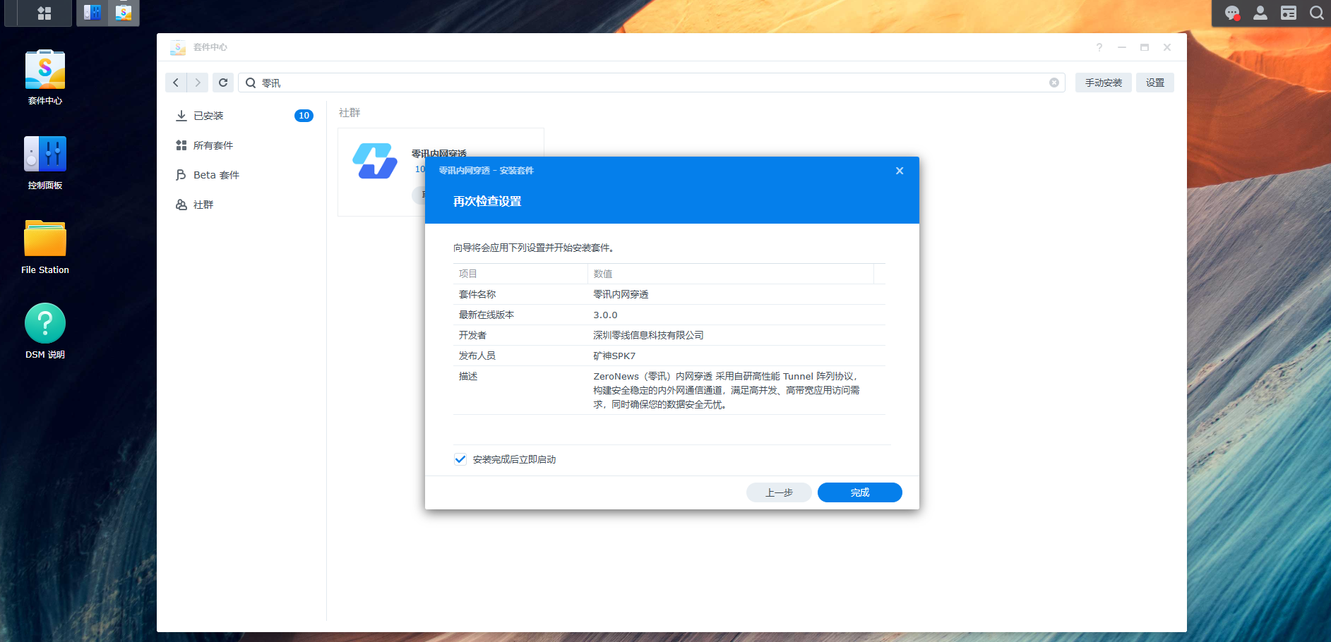 选择套件中心一键安装ZeroNews,为您带来以下便利: