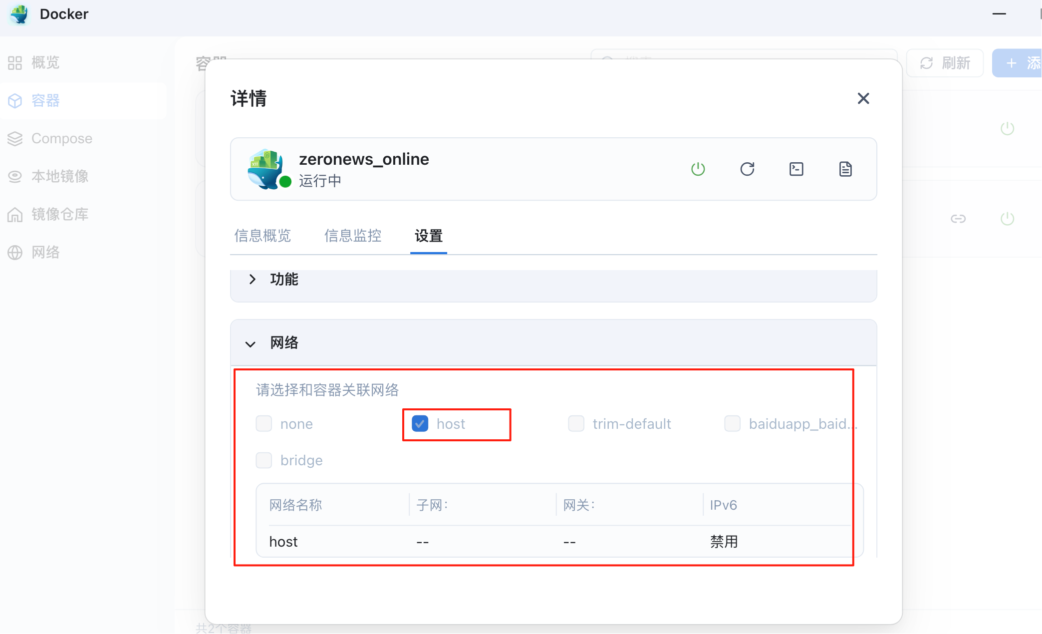 第 3 步:在飞牛私有云fnOS上启动 ZeroNews 容器