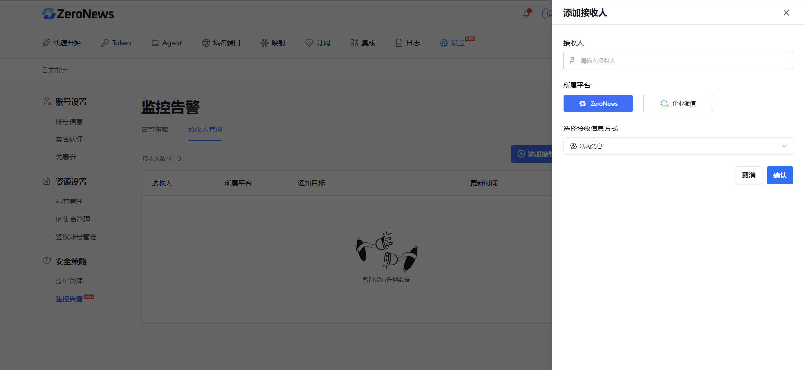 配置后,告警将通过 ZeroNews 系统内的站内消息通知您。