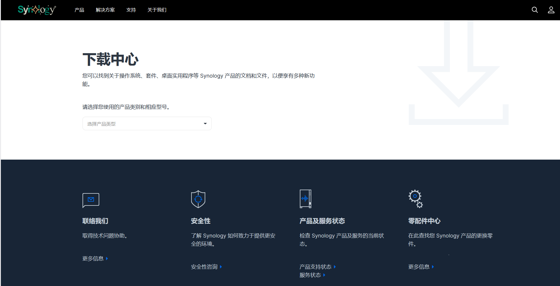 在下载中心页面中,选择产品类别合型号,我们选择 NAS ,型号根据我们NAS 对应的型号进行选择的,我的是 DS3615xs