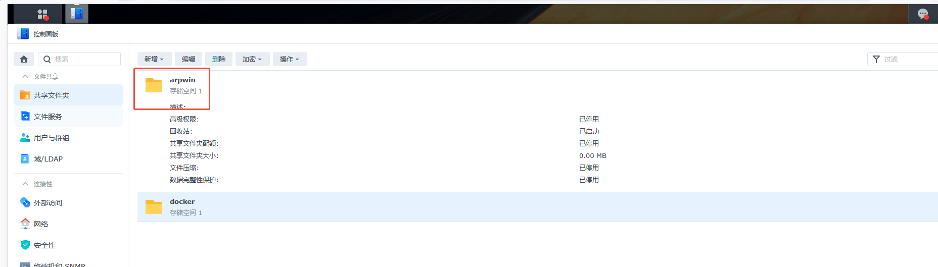 要使用 Synology Drive Server,我们还需要启用团队文件夹,这里我们需要先到控制面板的共享文件夹菜单下,点击添加,添加一个共享文件夹