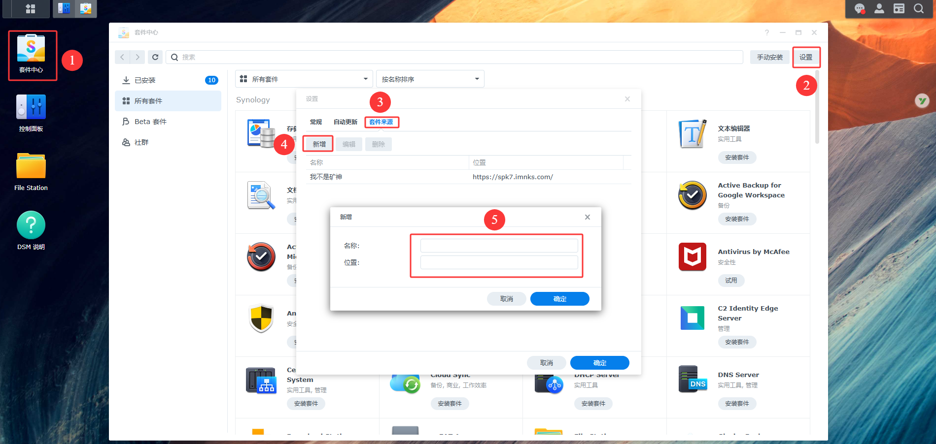 小提示: 添加成功后,您就能在套件中心看到来自矿神社区的丰富套件了。