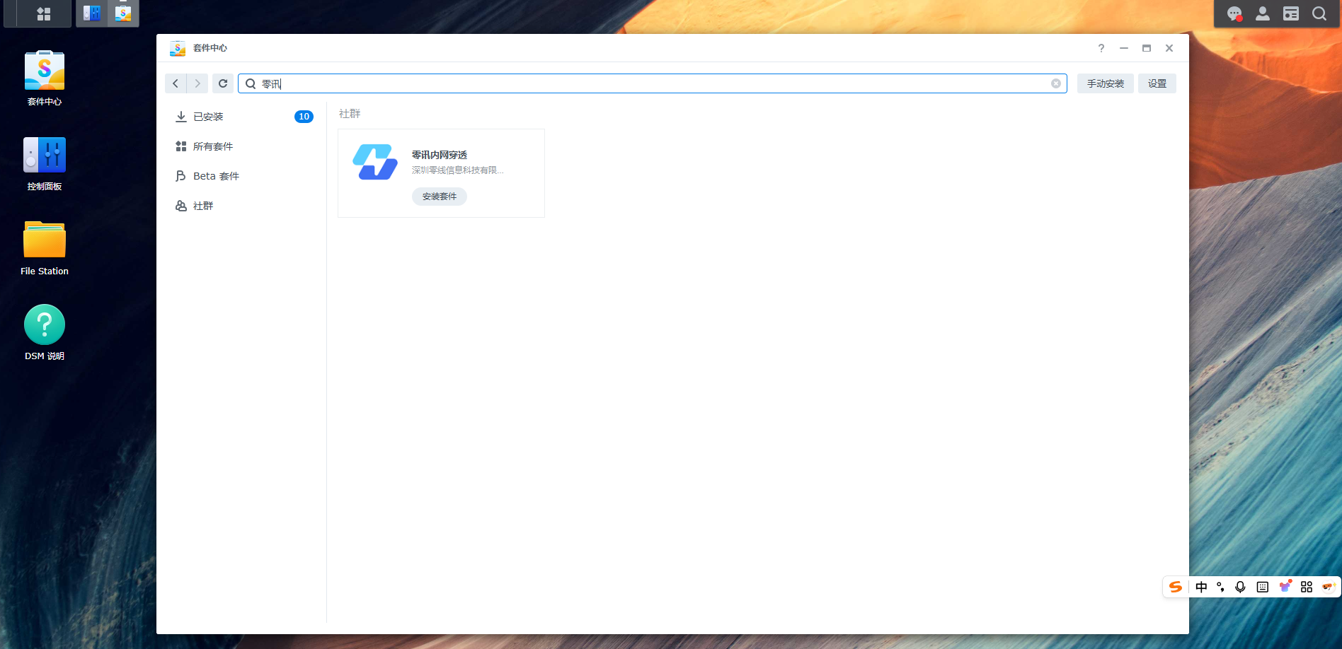 目前支持两种安装方式: 套件中心安装手动安装