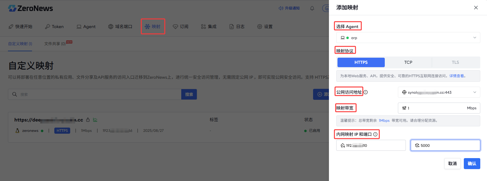1. 安装完成后,回到 ZeroNews 平台,Agent已经显示在线。