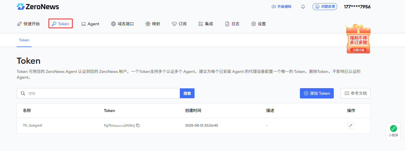 4. 输入Token 进行绑定【要管理和查看Token,请登录ZeroNews 平台,前往> Token 页面】